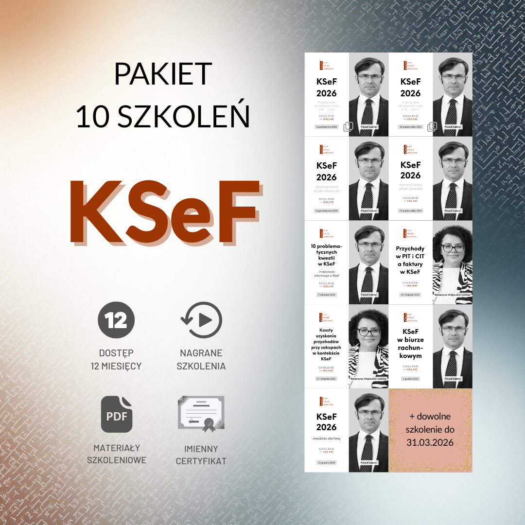 🔥 Pakiet 10 szkoleń KSeF za 99 zł + 23% VAT (czyli 9,90 zł + 23% VAT / 1 szkolenie).